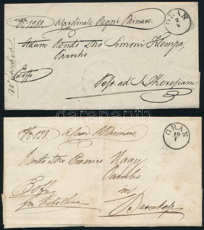 1856 Ex offo levél "GRAN" - "GRAN-NANA" - "KÖBÖLKÚT" + 1861 Ex offo levél "GRAN"