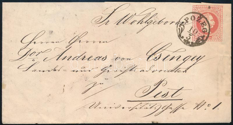 ~1869 5kr díjjegyes boríték "POZEG" bélyegzéssel