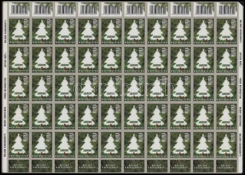 2021 Karácsony - Belföld öntapadós hajtott teljes ív, ívszélen vonalkóddal, ívszélen "BOLDOG KARÁCSONYT!" több nyelvű felirattal
