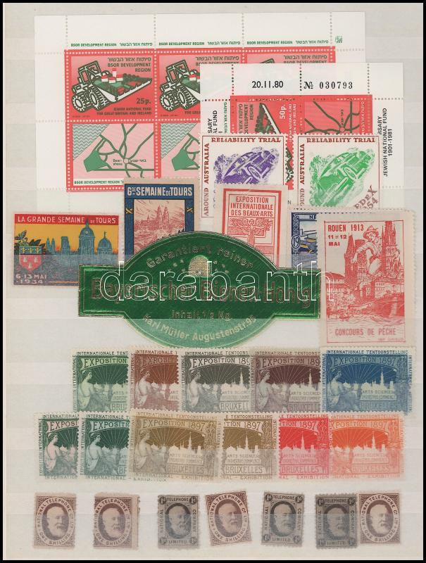 Régi és ujabb, vegyes alkalmi és kiállítási levélzáró tétel kétoldalas berakólapon / Collection of exhibition expo and other poster stamps on two pages