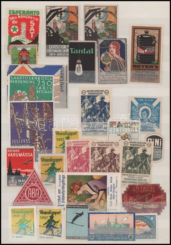 Régi, vegyes alkalmi és kiállítási levélzáró tétel kétoldalas berakólapon / Collection of old exhibition expo and other poster stamps on two pages