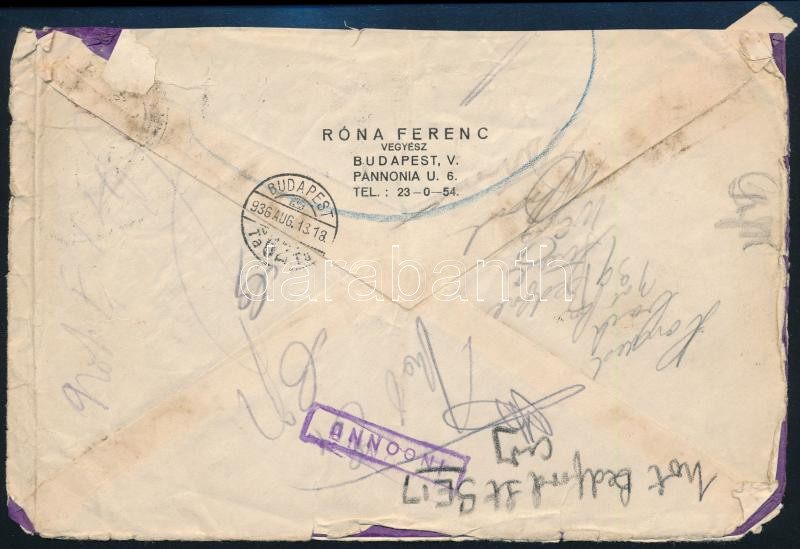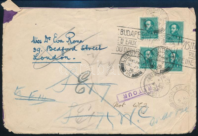1936 Levél Budapestről Londonba, majd visszaküldve