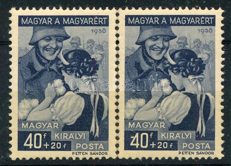 1939 Magyar a magyarért 40f pár lemezhibával / Mi 597 pair with plate variety