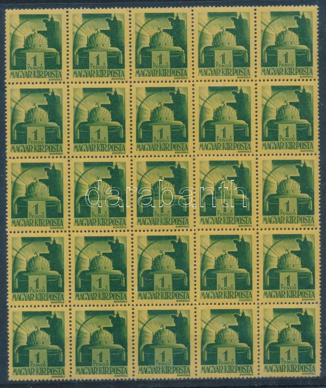 1945 Felszabadulás 1P 25-ös tömb piros felülnyomás nélkül / Mi 772 X block of 25, without red overprint