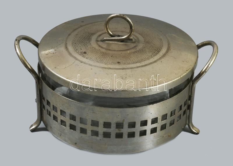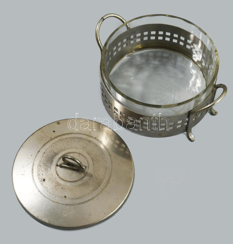 Antik cukortartó üveg betéttel, 14x8 cm