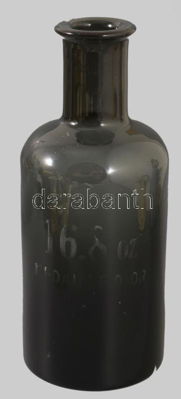 Antik füstszínű patikai üveg, feliratos, hibátlan, m: 19 cm
