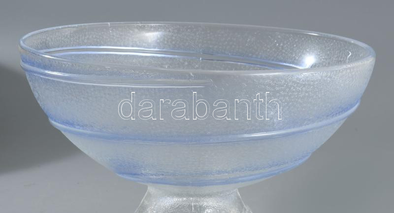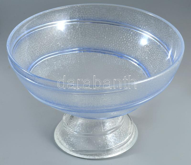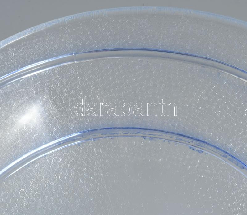 cca 1980 talpas kínáló, kék csíkozott díszítéssel, hibátlan, d: 24 cm, m: 15 cm