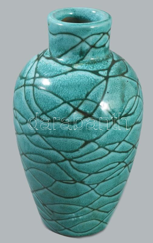 Türkizmázas kerámia váza, m: 15,5 cm