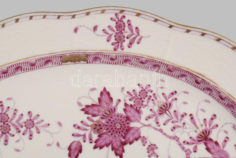 Herendi Apponyi purpur mintás pecsenyés tál, jelzett, restaurált, 36x27 cm