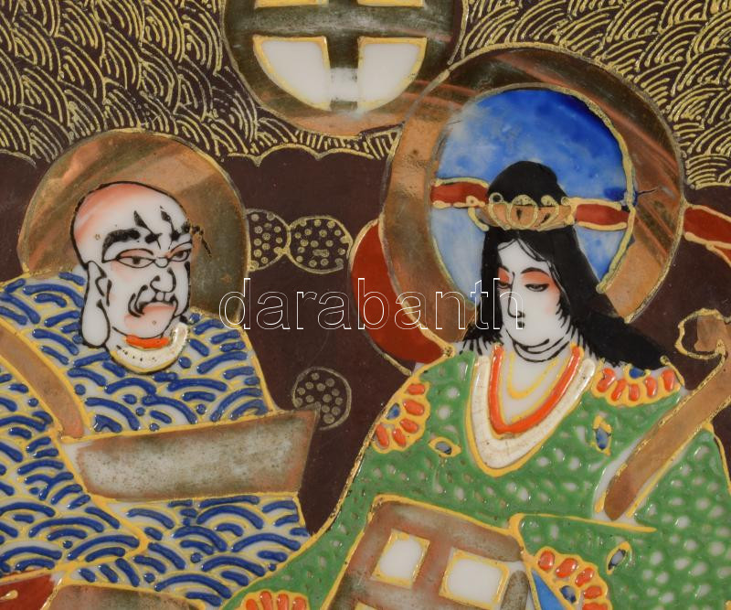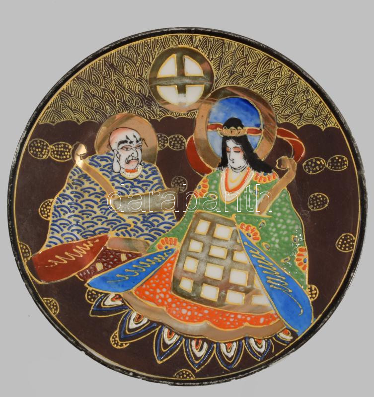 Satsuma japán tányér, jelzett, kopással, d: 19 cm