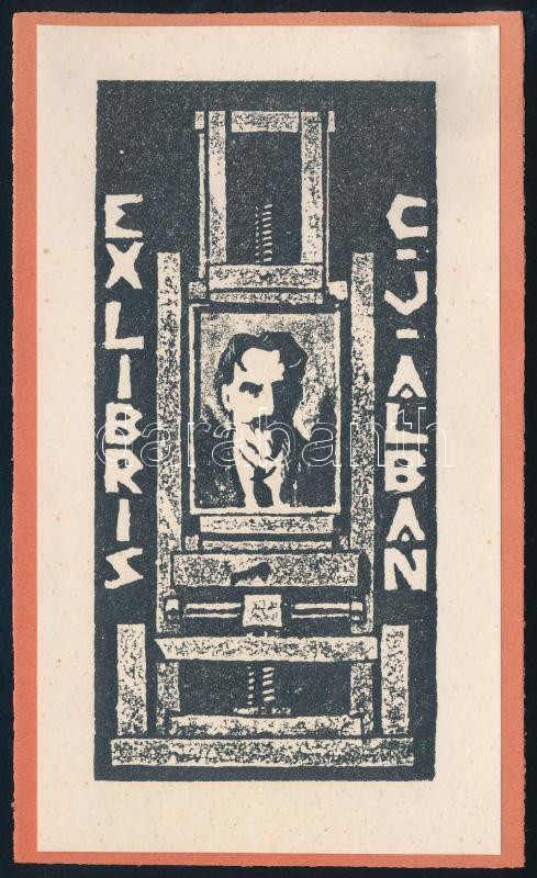 Constant Joseph Alban (XX. sz. első fele): Ex libris C. J. Alban. Eternit nyomat, papír, jelzés nélkül. Lap teteje papírra kasírozva. 13x6,5 cm. Ritka!