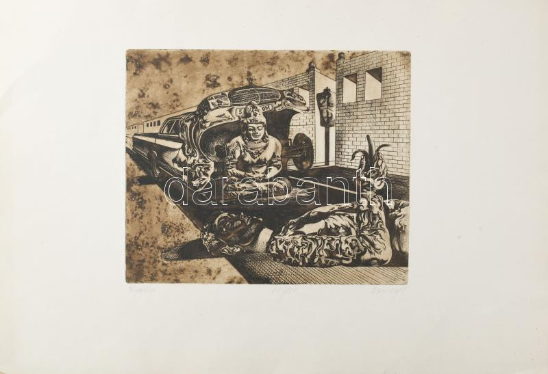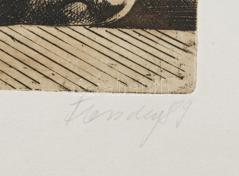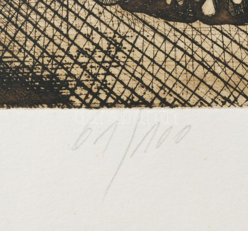 Farsang Sándor (1945-2015): Buddha, 1989. Rézkarc, papír, jelzett, számozott (61/100), hátoldalán Actual Art Galéria bélyegzésével, 26,5x31,5 cm