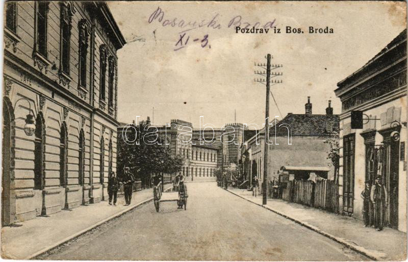 Brod, Bosanski Brod, street view, carriage, cafe, restaurant, shop, train station. (Rb)