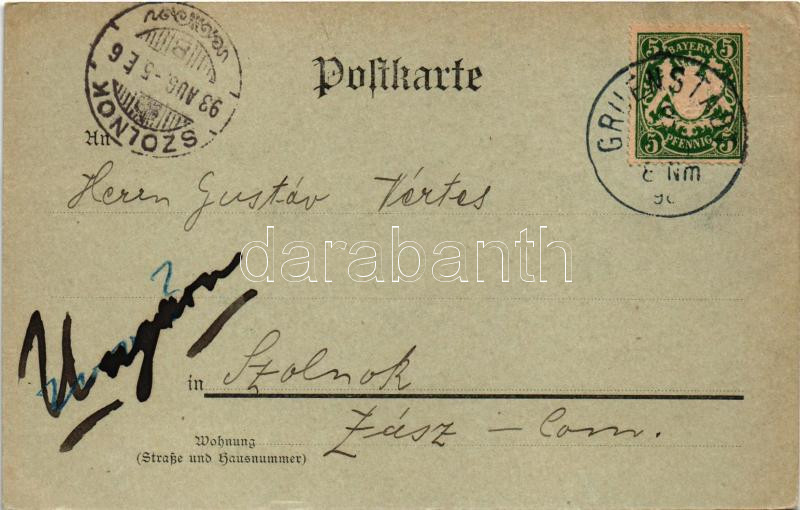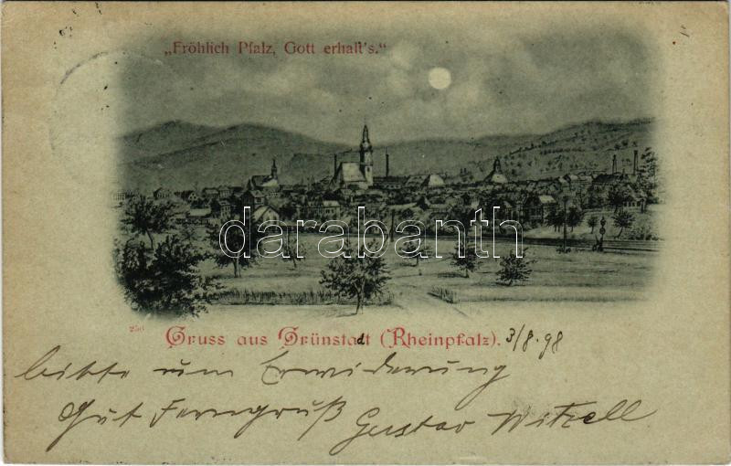 1898 Grünstadt (Rheinpfalz), Fröhlich Pfalz, Gott erhalt's / view at night in moonlight