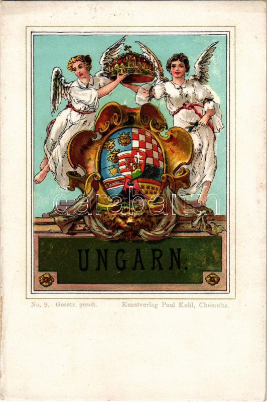 Ungarn / Magyar királyi címer / The Kingdom of Hungary, coat of arms. Kunstverlag Paul Kohl No. 9. litho (kopott élek / worn edges)