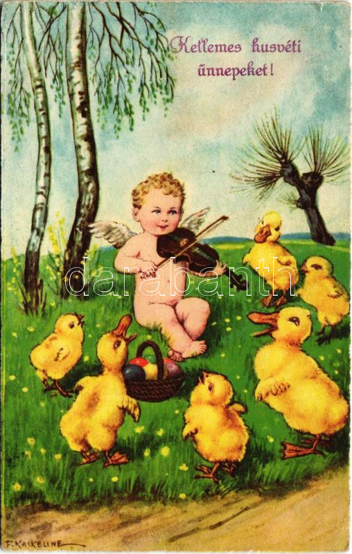 1928 Kellemes húsvéti ünnepeket! / Easter greeting art postcard s: F. Kaskeline (kis szakadás / small tear)