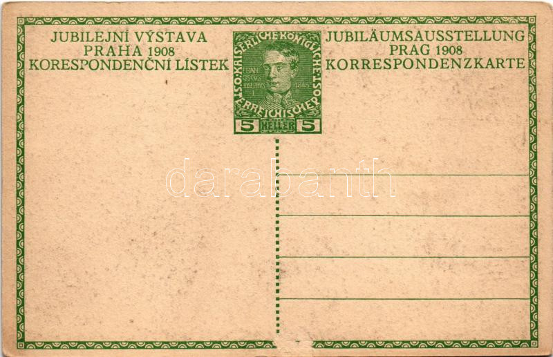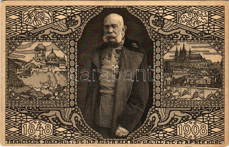 1848-1908 Franciscus Josephus I.D.G. Imp. Austr. Rex Boh.Gal.Ill. Etc. et. Ap. Rex Hung. / Ferenc József uralkodásának 60. évordulója, jubileumi díjjegyes lap / Franz Joseph's 60th anniversary of reign. Art Nouveau, Viribus Unitis. 5 Heller Ga. (EK)