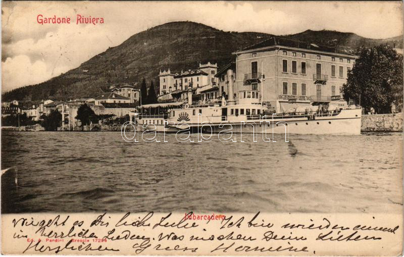 1906 Gardone Riviera, Imbarcadero / pier, "BALDO" steamship (tear)