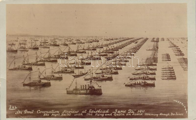 1911 The Great Coronation Review at Spithead, The royal yacht with the King and Queen on board steaming through the lines