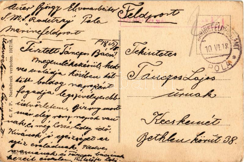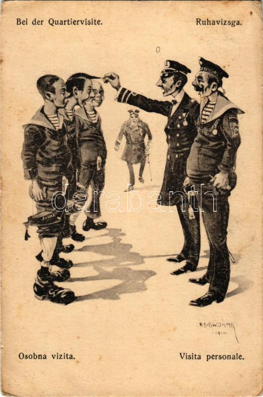 1918 Bei der Quartiervisite / Ruhavizsga / Austro-Hungarian Navy K.u.K. Kriegsmarine humorous mariner art postcard. C.F. P. Nr. 15a 1917/18. s: Ed Dworak + "Marinefeldpostamt Pola" (EB)