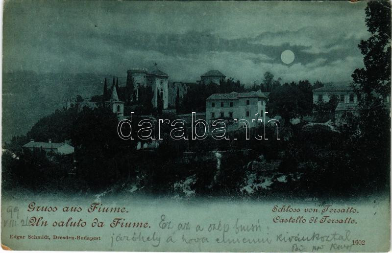 1899 Fiume, Rijeka; Trsat / Tersatto, kastély este holdfényben. Edgar Schmidt / castle at night in moonlight (szakadás / tear)