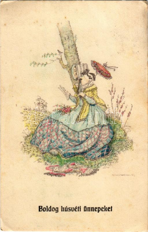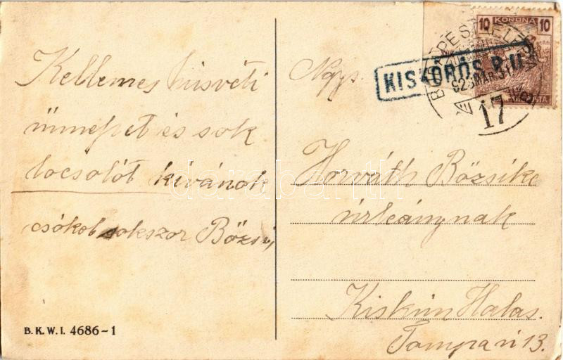 1923 Boldog húsvéti ünnepeket! / Easter greeting art postcard. B.K.W.I. 4686-1. s: Mela Koehler (fl)