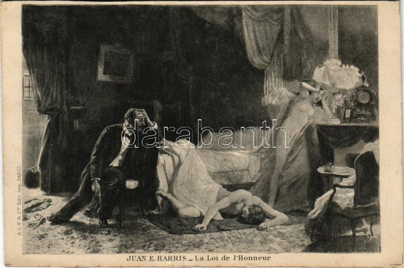 La Loi de l'Honneur / "The Law of Honor" french art postcard, A. L. V. and Cie. s: Juan E. Harris (vágott / cut)
