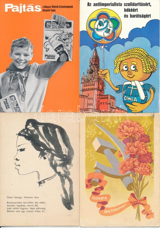17 db MODERN reklám és propaganda képeslap: úttörők, Vietnam, Szovjetunió stb. / 17 modern advertisement postcards