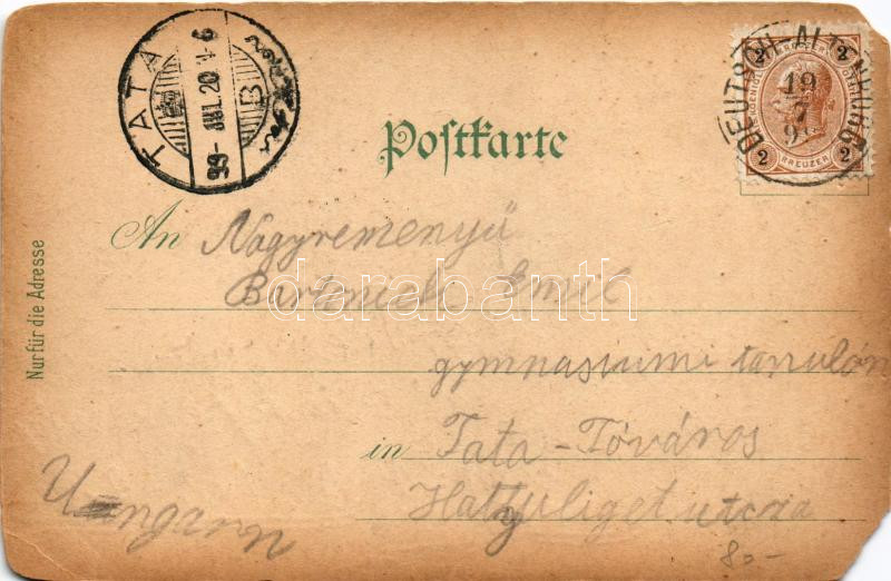 1899 Bad Deutsch-Altenburg, Kirche, Türkenhügel, Haidenthor, 1000 jähr. Rundkapelle, Amphitheater. M. Nowatzi, Kunstanstalt Karl Schwidernoch Art Nouveau, floral, litho (EM)
