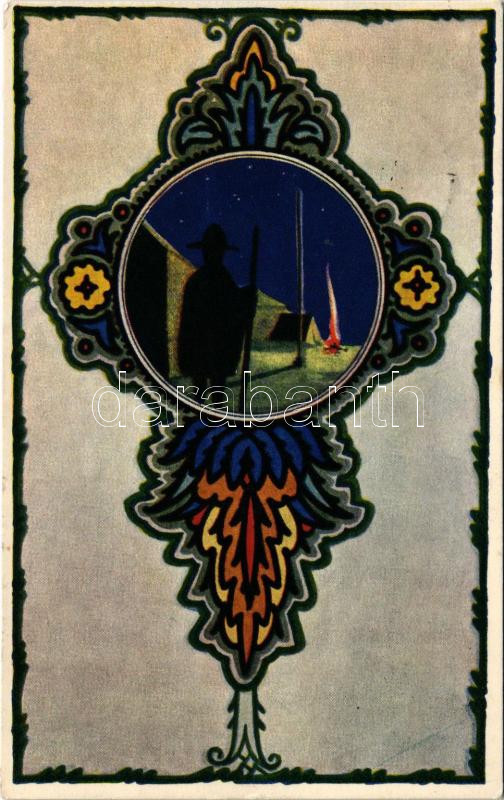 1929 Budapesti 25. Szt. Imre cserkészcsapat grafikai művészlap / Hungarian boy scout art postcard s: Megyer Meyer Attila