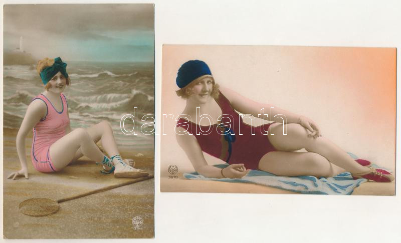 11 db RÉGI enyhén erotikus fürdőruhás hölgy képeslap / 11 pre-1945 gently erotic women in swimsuits postcards (P.C. Paris, A. Noyer, E.K.C.)