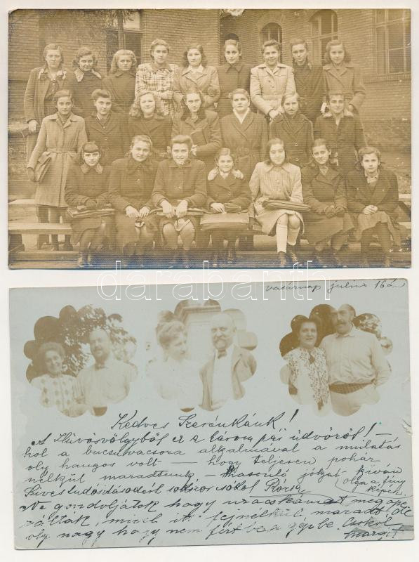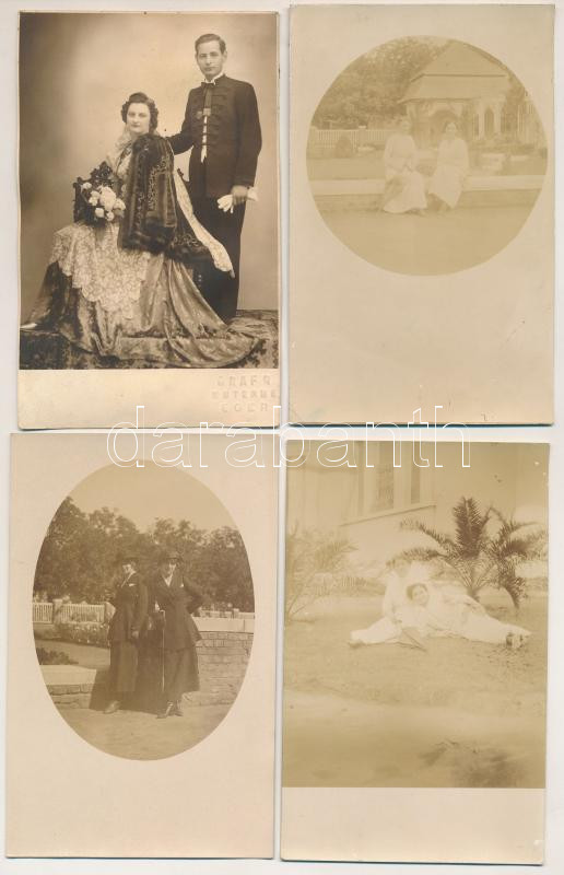 12 db RÉGI fotó képeslap: társaságok, párok, családi alkalmak, hölgyek / 12 pre-1945 photo postcards: groups, couples, family occasions, ladies