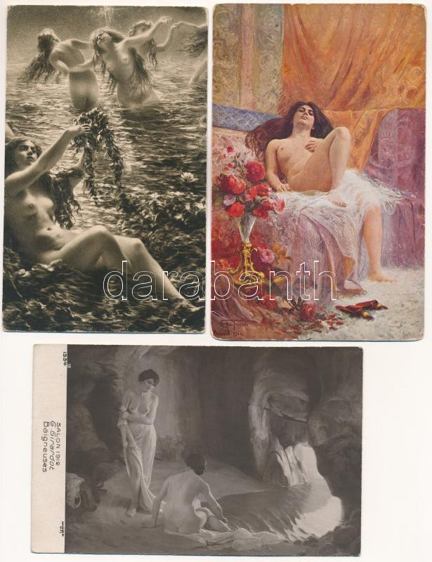 21 db régi erotikus képeslap + 4 db modern nyomtatvány / 21 pre-1945 erotic postcards + 4 modern