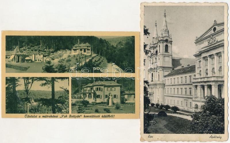 4 db RÉGI magyar város képeslap: Zirc, Mátraháza, Hévíz, Szováta / 4 pre-1945 Hungarian town postcards