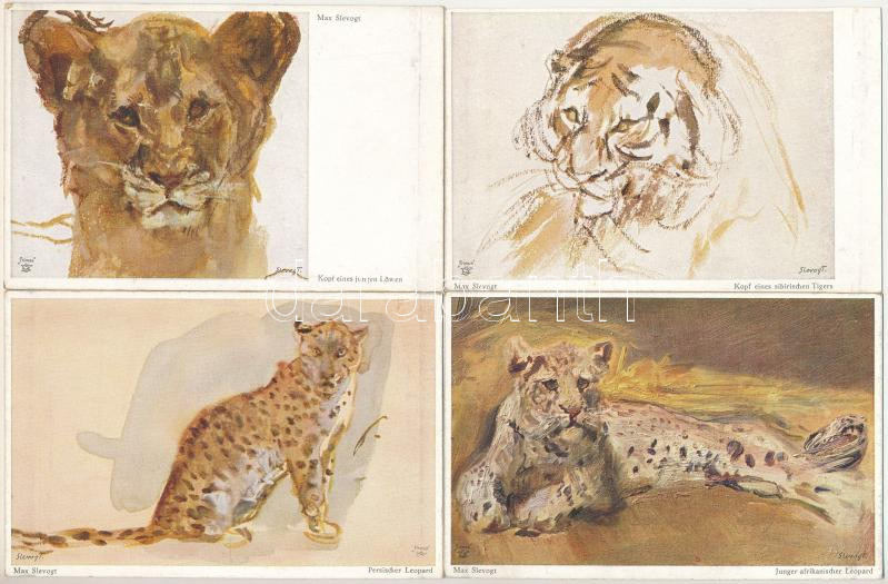 4 db RÉGI német motívum képeslap: tigrisek. Wohlgemuth & Lissner / 4 pre-1945 German tigers art postcards