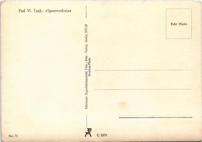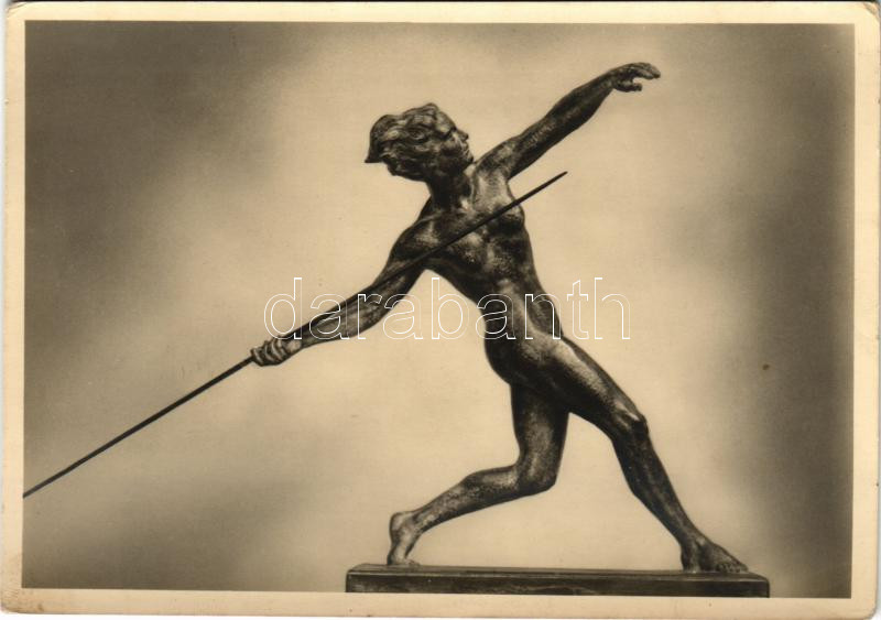 Berlin; Professor Wilhelm Tank: "Speerwerferin" / Gerelyhajító, szobor, Harmadik Birodalom / German sculptor, javelin thrower, iron sculpture, Third Reich. photo Berolina (EK)