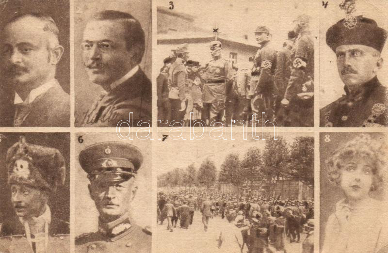 Müncheni sörpuccs eseményei és arcai: Ulain Ferenc, Kiss Menyhért, Ludendorf német tábornok, Rakovszky Iván, Frigyes Vilmos, Lossow, Darvas Lili / Hitlerputsch / Events and faces of the Munich Beer Hall Putsch (EK)