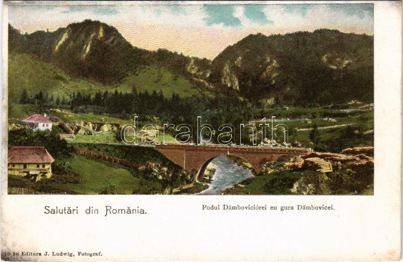 Dambovicioara, Salutari din Romania. Podul Damboviciorei eu gura Dambovicei. Ed. J. Ludwig / bridge