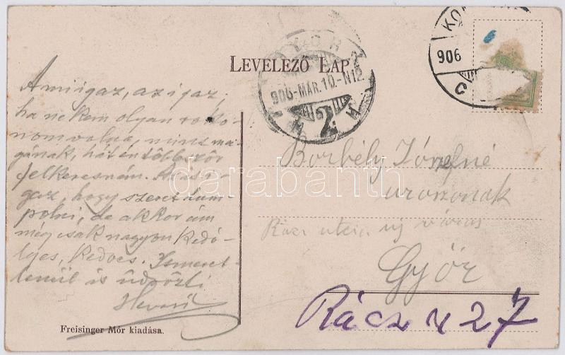 1906 Komárom, Komárno; Baross utca, Maitz Rezső Vigadó étterme, Krausz Samu üzlete. Freisinger Mór kiadása / street view with restaurant and shops (fl)