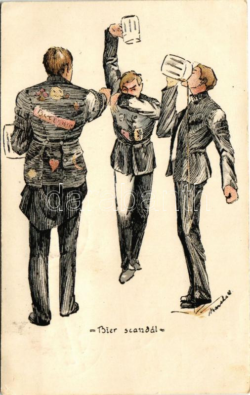 1923 Selmecbánya, Schemnitz, Banská Stiavnica; Bier scandal. A Selmeci Diákéletből XIII. Studentika. Röttig-Romwalter nyomda rt. Sopron / Studentica art postcard s: Bartha L. (EK)