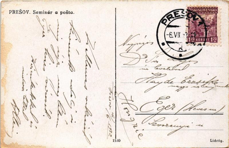 1932 Eperjes, Presov; Seminár a posta / Jókai tér, szeminárium és postapalota este holdfényben / square, seminary, post palace at night in moonlight (Rb)