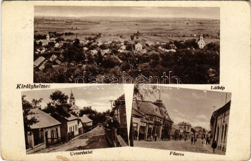1941 Királyhelmec, Helmec, Kralovsky Chlumec; látkép, utca részlet, Fő utca / general view, street view, main street (EK)