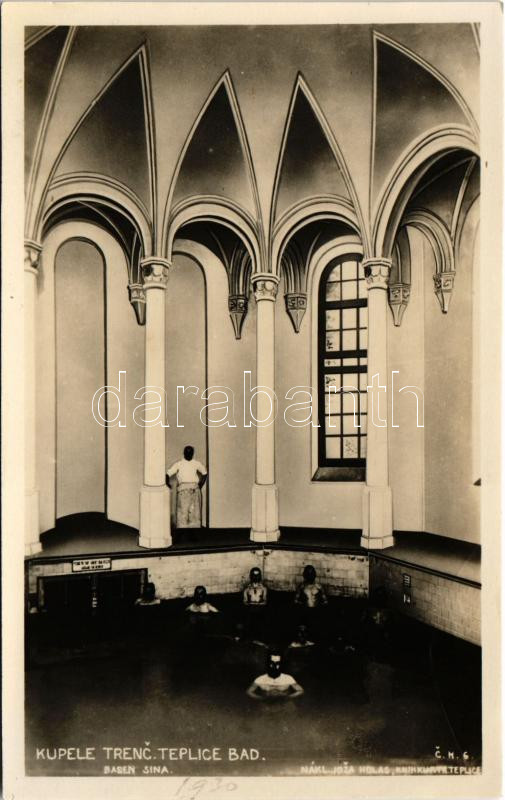 Trencsénteplic, Trencianske Teplice; Sina fürdő, belső. J. Holas kiadása / Sina Basen / spa, bathhouse, interior
