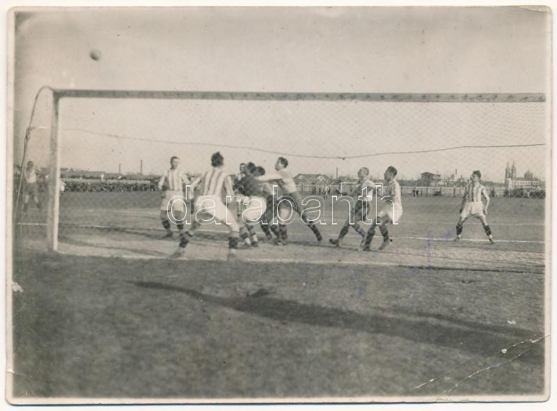 1928 Temesvári AC - Temesvári Kinizsi labdarúgó mérkőzés, focisták, Dobay István korai csapata / Timisoara AC - Chinezul Timisoara football match, football players, goalkeeper, sport photo (11,1 x 8,1 cm) (non PC) (Rb)