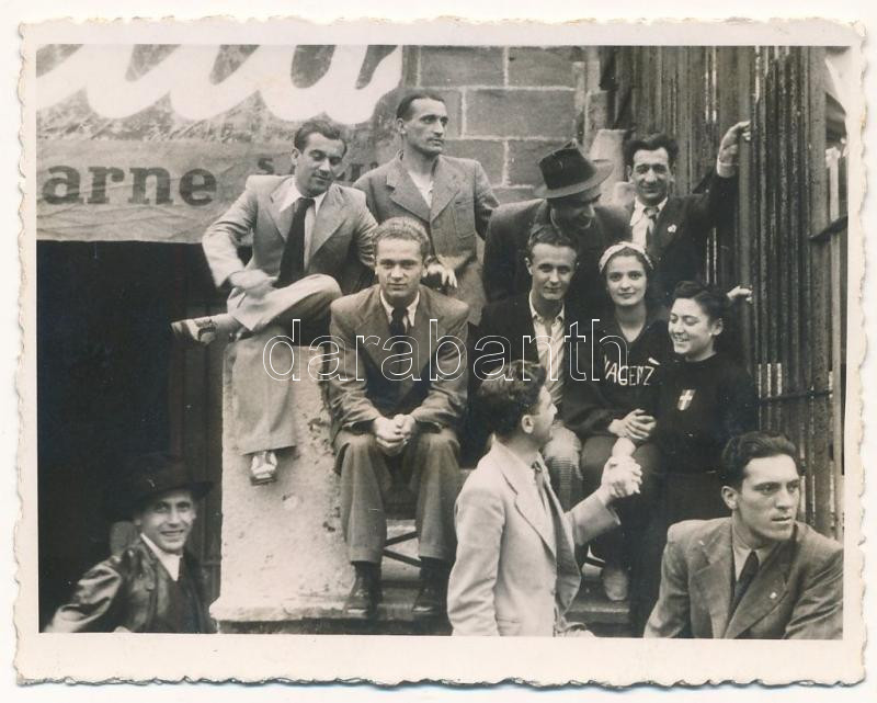 1937 Milano, Milan; a RIPENSIA Temesvár labdarúgó csapat az AC Milan elleni meccsen, focisták / Italy, RIPENSIA Timisoara football team, match against AC Milan, sport photo (8,4 x 6,5 cm) (non PC) (fl)