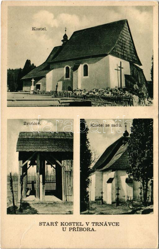 Trnávka (Príbor), Stary Kostel v Trnávce u Príbora, Zvonice. Fotoatelier R. Goláb / old castle, belfry (surface damage)