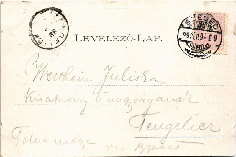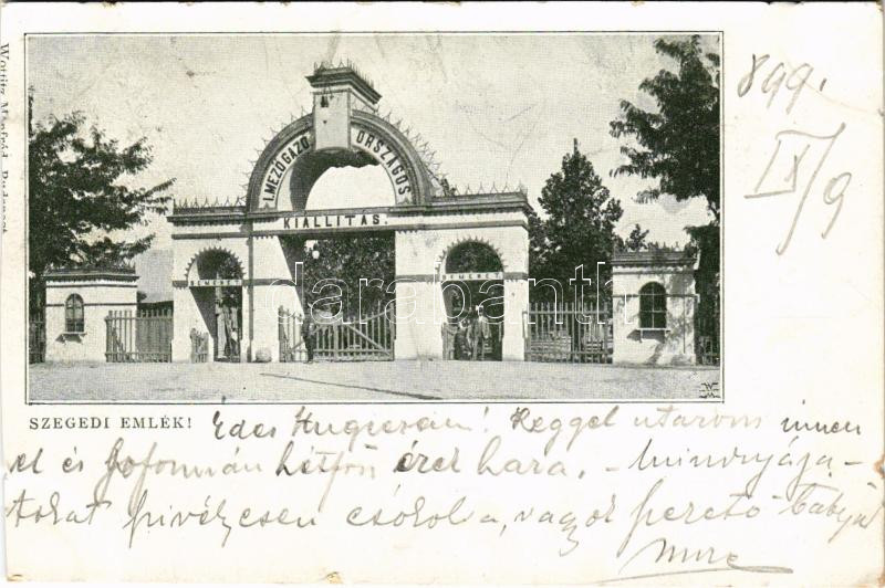 1899 Szeged, I. Mezőgazdasági Országos Kiállítás kapuja, szegedi emlék. Wottitz Manfréd kiadása (vágott / cut)