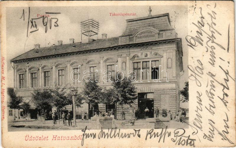 1903 Hatvan, Posta és takarékpénztár. Hoffmann M. L. kiadása (EK)