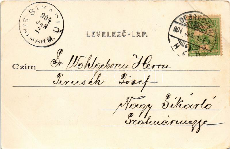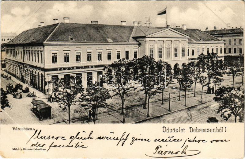 1904 Debrecen, Városháza, Zádor Lajos üzlete, piac. Mihály Sámuel kiadása (EK)