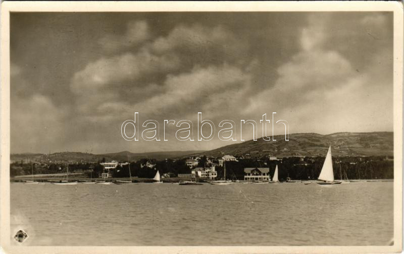 1931 Balatonfüred, Balaton part részlet, Klubház és prímási nyaraló, vitorlás, villa. Magyar Rotophot r. t. (EK)